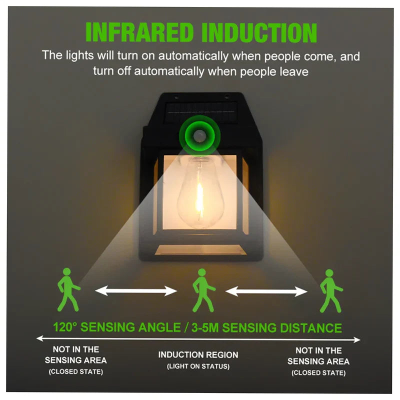Solar Tungsten Filament Lamp Outdoor Waterproof Intelligent Induction Wall Lamp Courtyard Garden Villa Lighting